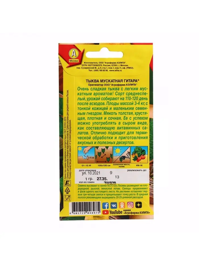 Набор семян Тыква мускатная "Гитара", 5 шт.