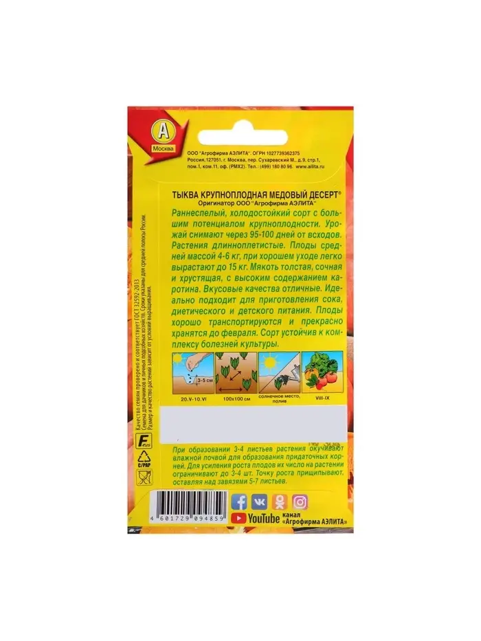 Набор семян Тыква крупноплодная "Медовый десерт", 5 шт.