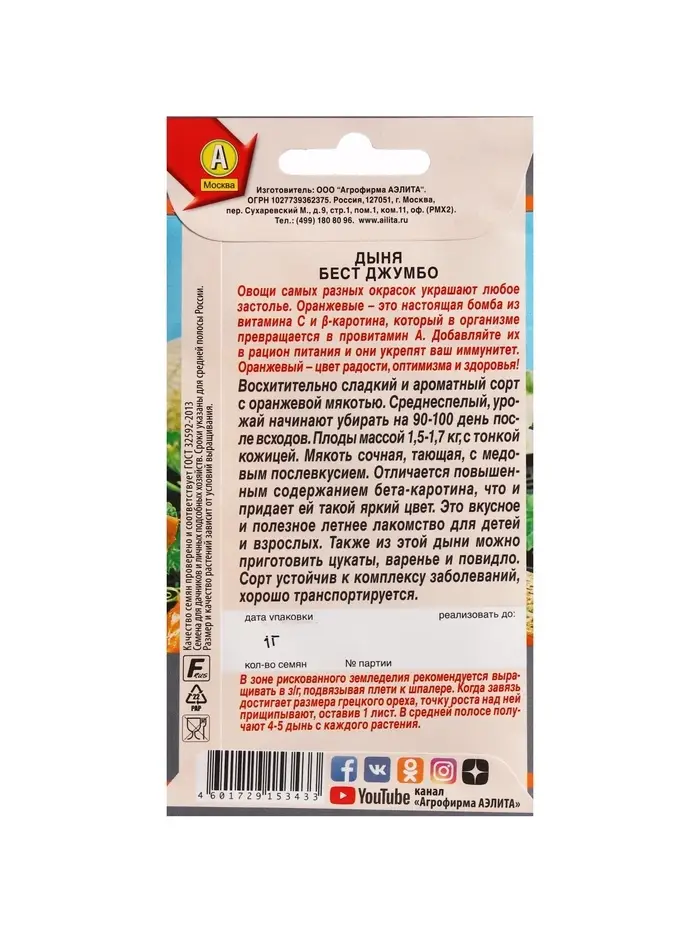 Набор семян Дыня "Бест Джумбо", 5 шт.