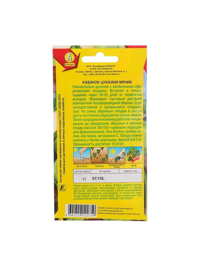 Набор семян Кабачок цуккини "Мячик", 5 шт.