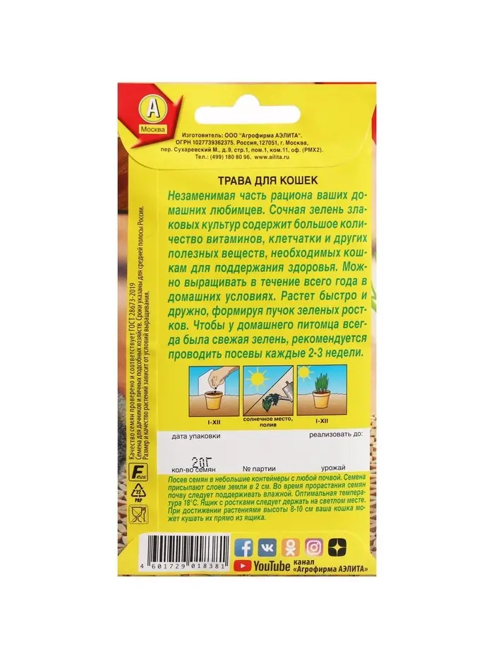 Набор семян "Трава для кошек", 5 шт.