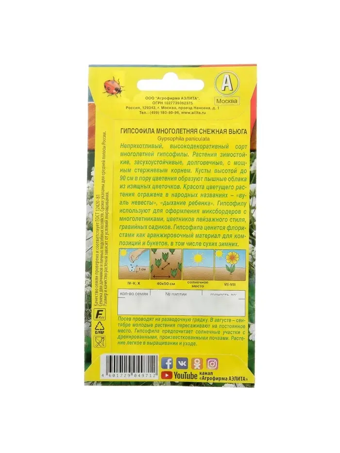 Набор семян Гипсофила "Снежная вьюга", 5 шт.