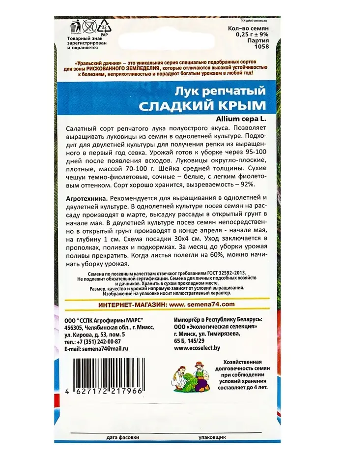 Набор семян Лук репчатый "Сладкий Крым", 5 шт.
