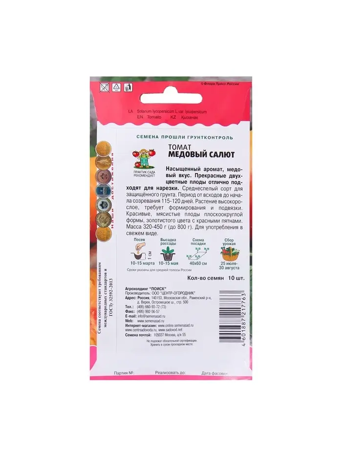 Набор семян Томат "Медовый салют",индетерминантный,высокорослый, 5 шт.