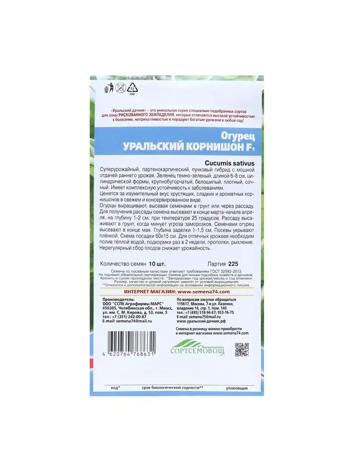Набор семян Огурец "Уральский корнишон" F1, раннеспелый, партенокарпический, 5 шт.