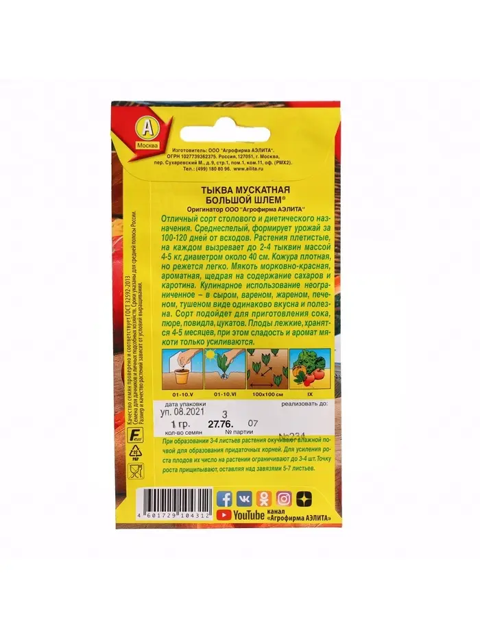 Набор семян Тыква мускатная "Большой шлем", 5 шт.