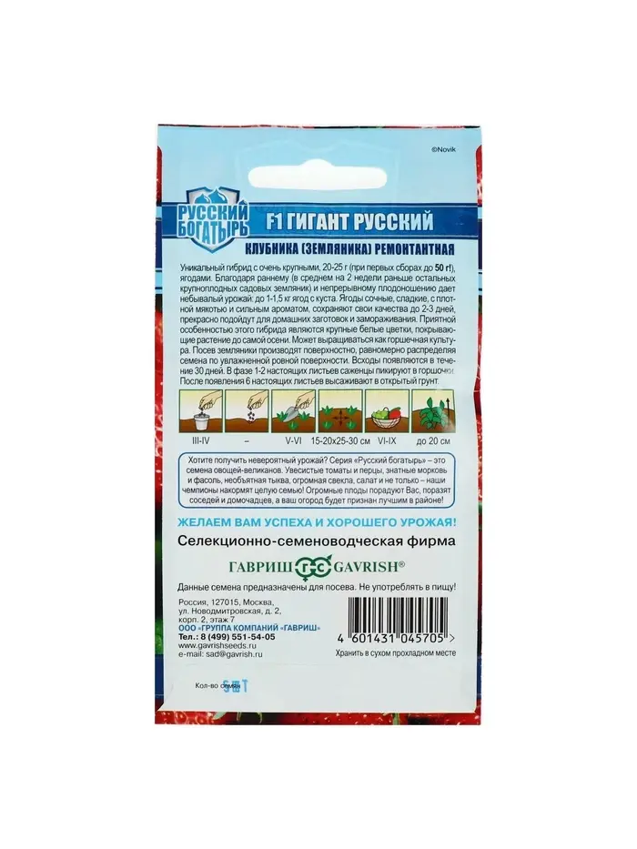 Набор семян Земляника "Гигант русский", F1, серия Русский богатырь, 3 шт.
