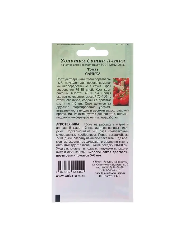 Набор семян Томат "Санька", ультраранний, детерминантный,низкорослый, 5 шт.