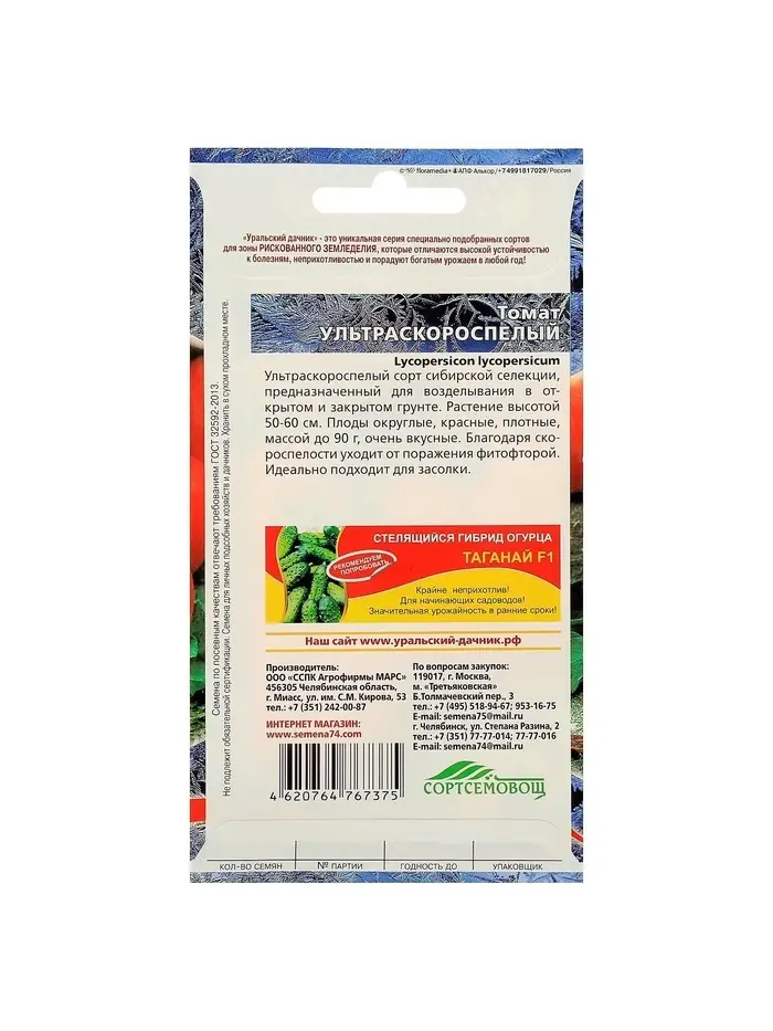 Набор семян Томат "Ультраскороспелый",детерминантное,низкорослый, 5 шт.