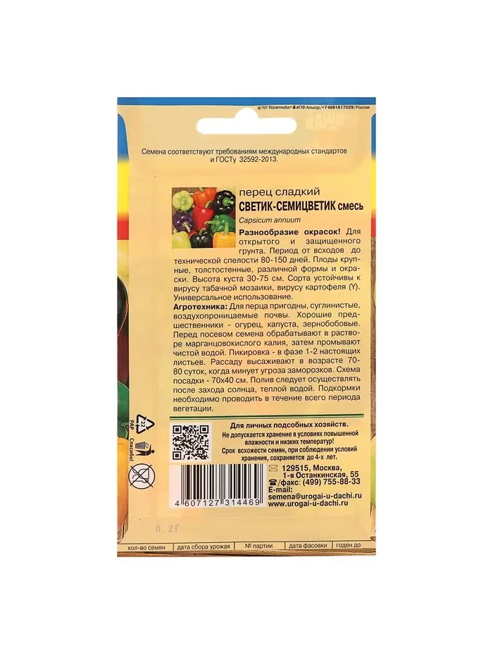 Набор семян Перец сладкий "СВЕТИК-СЕМИЦВЕТИК", смесь, 5 шт.