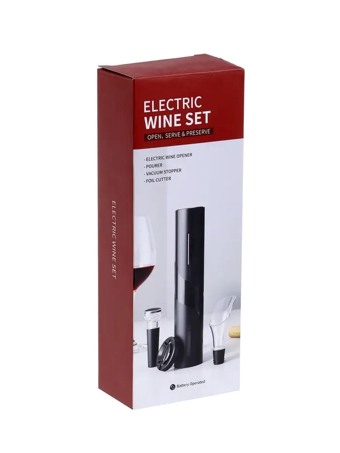 Набор сомелье электрический LSH-04, пробка, аэратор, штопор, от батареек, пластик
