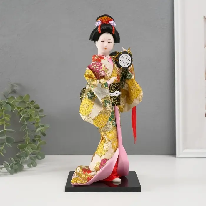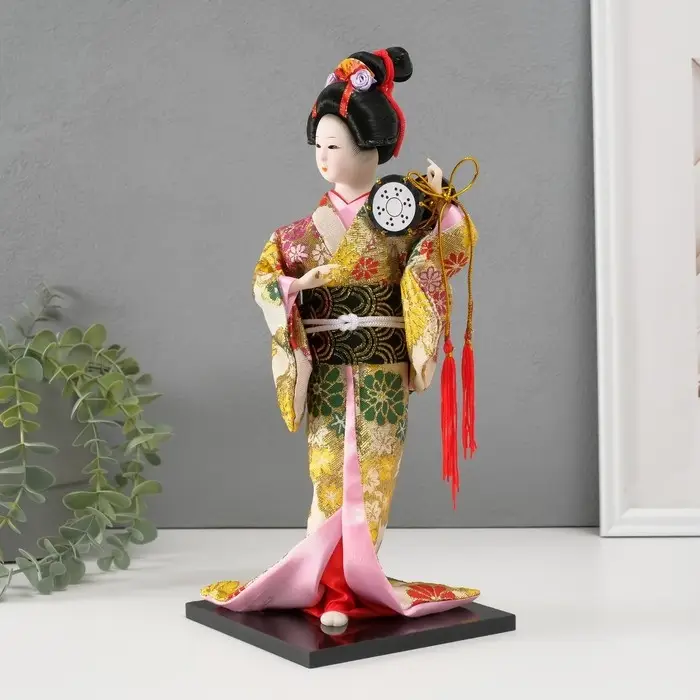 Кукла коллекционная "Гейша в шелковом кимоно с барабаном" 22,5 см