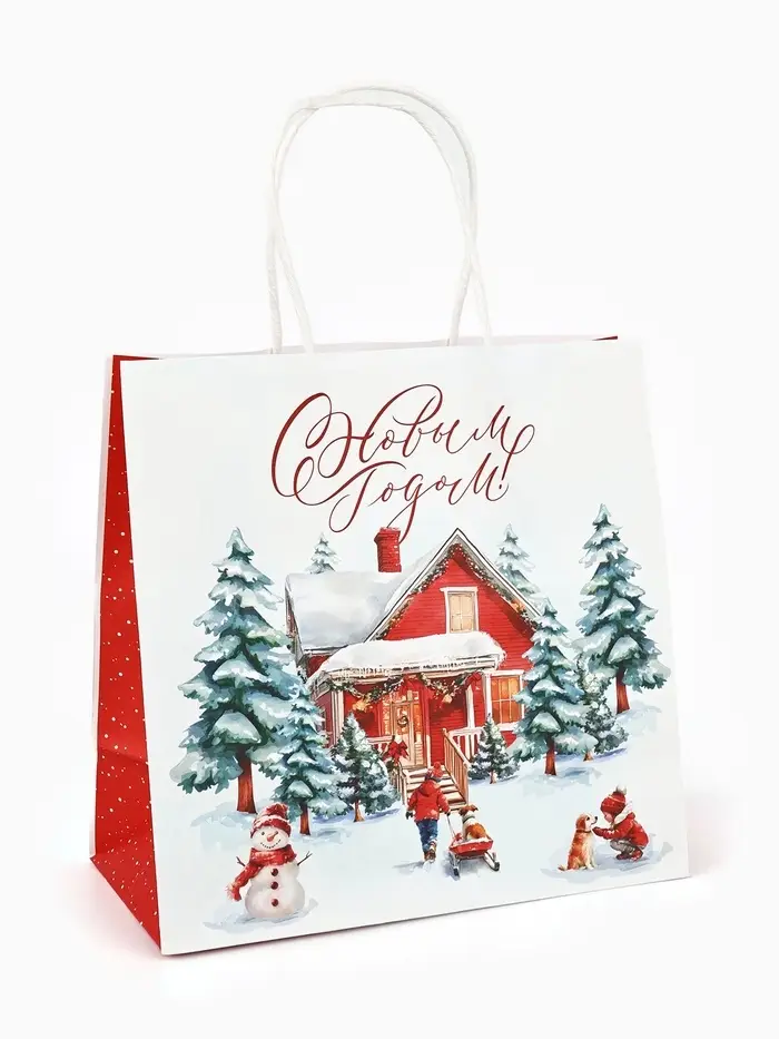 Набор пакетов крафтовых «Новогодний», 10 шт, 22 × 22 × 11 см