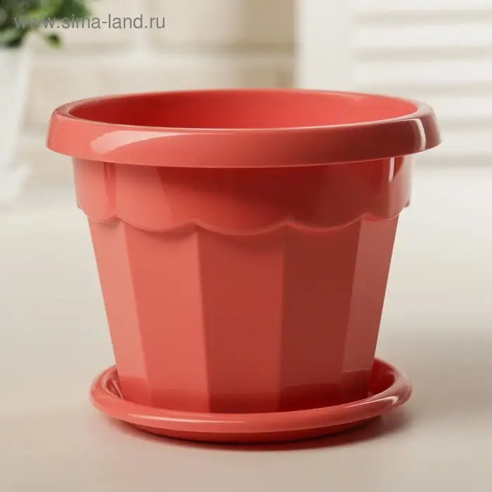 Горшок для цветов с поддоном Доляна «Эрика», 0,7 л, цвет коралловый