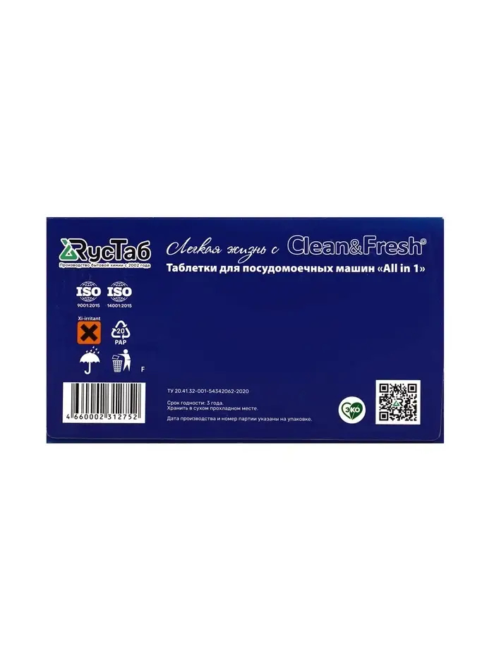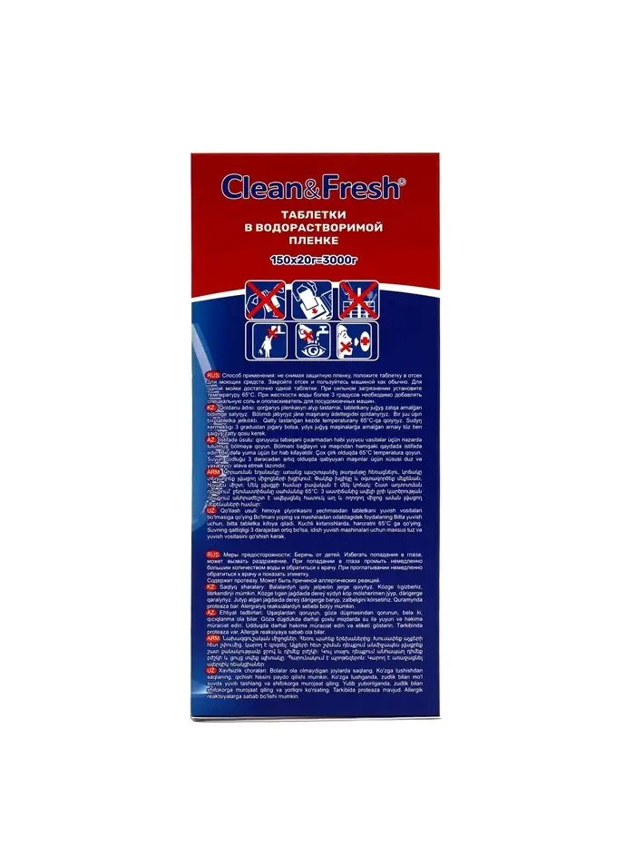 Таблетки для посудомоечных машин Clean&Fresh All in 1, 150 шт (водорастворимая упаковка)