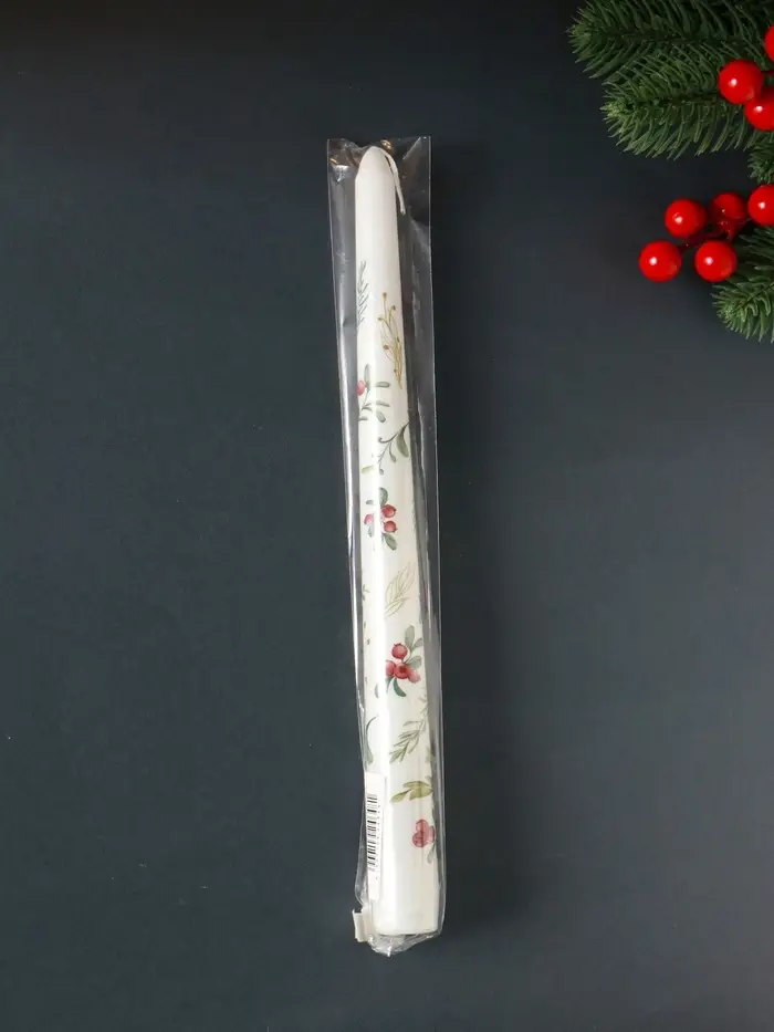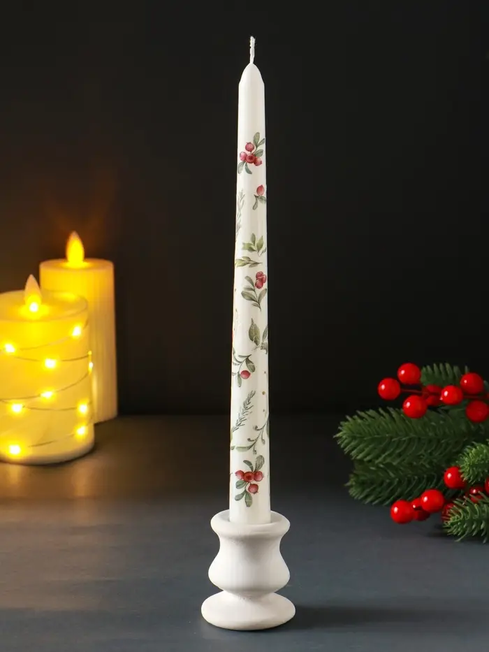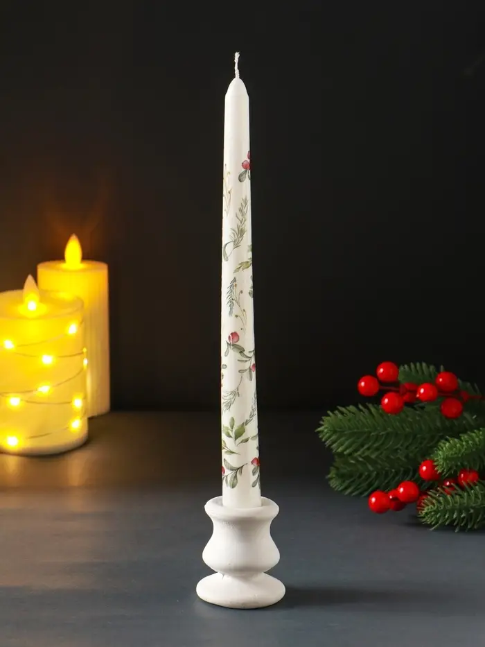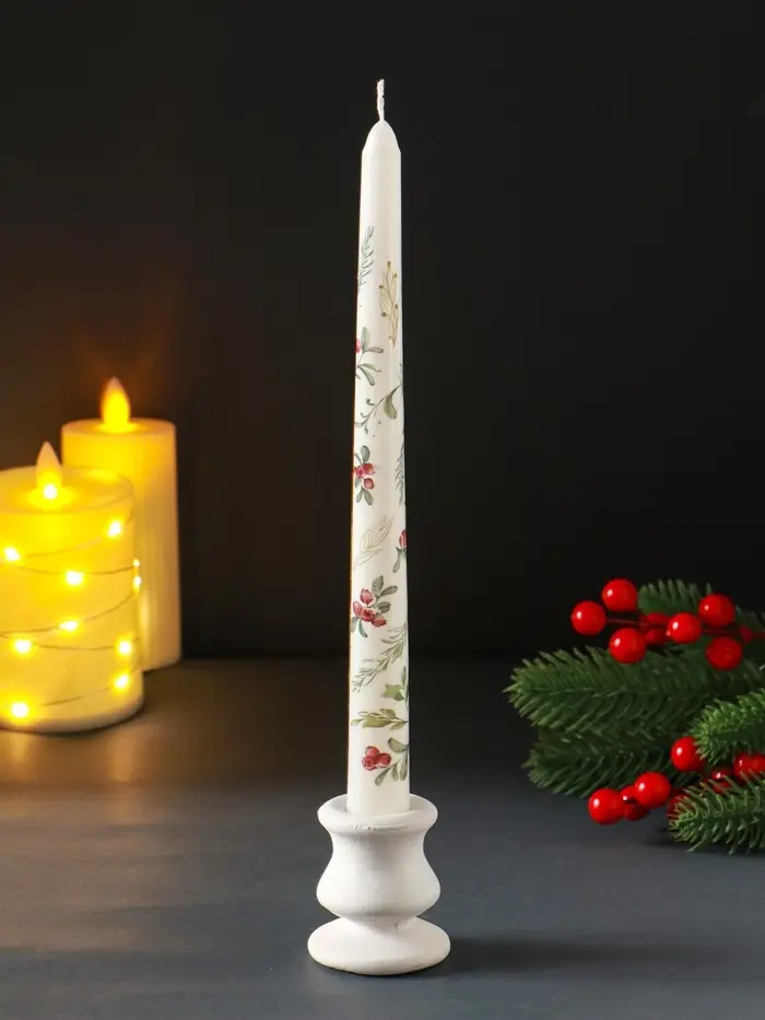 Свеча античная новогодняя 255х22 мм с декором, зимняя