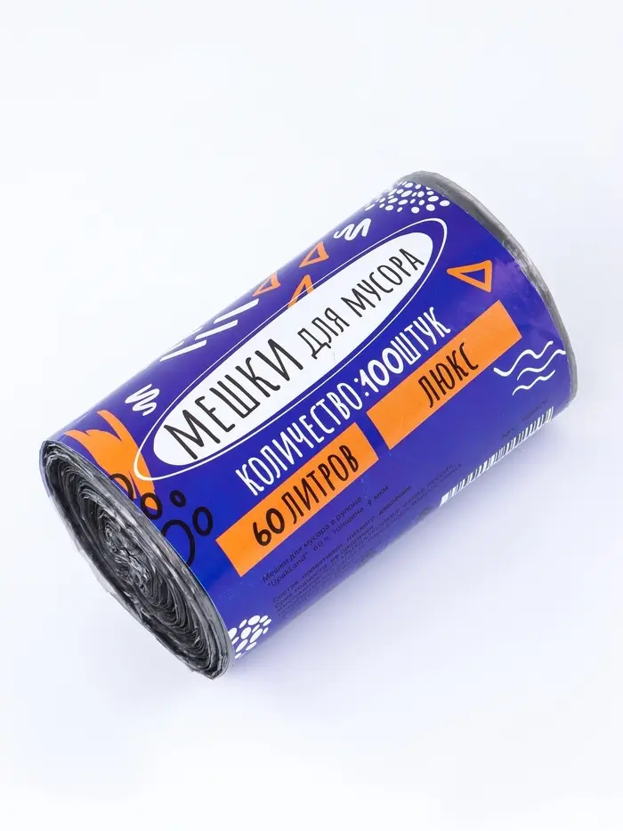 Мешки для мусора в рулоне 60 л, черные, ПНД, 9 мкм, 100 шт