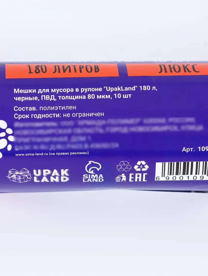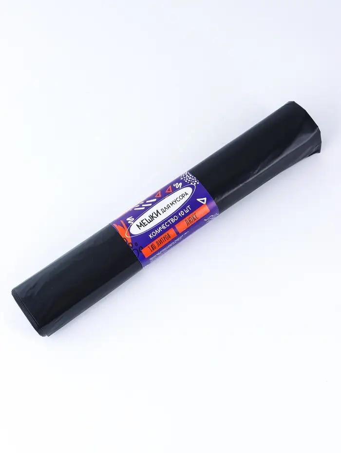 Мешки для мусора 180 л, 80 мкм, ПВД, 10 шт, цвет черный