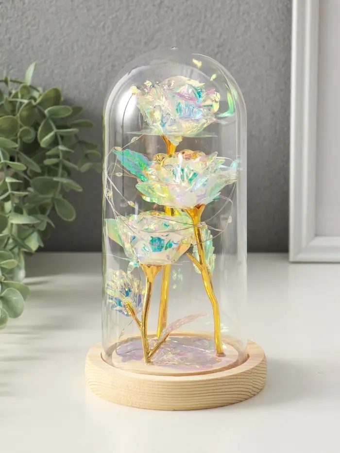 Сувенир свет "3 розы в колбе" LED 3хААА серебристый 11х11х22 см