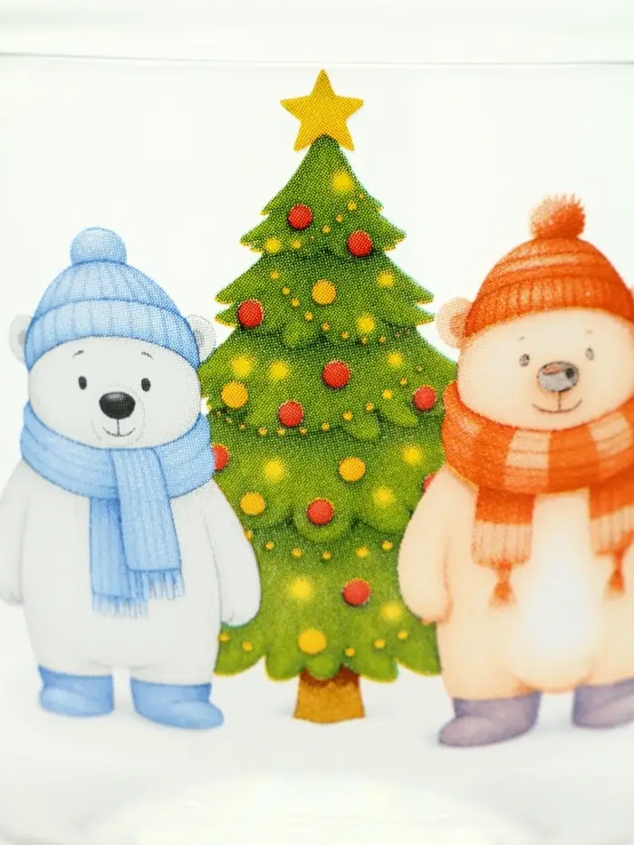 - Прозрачность материала усиливает ощущение глубины: мишки не наклеены — они *стоят* в лесу, как воспоминание, которое вдруг всплывает в декабре.