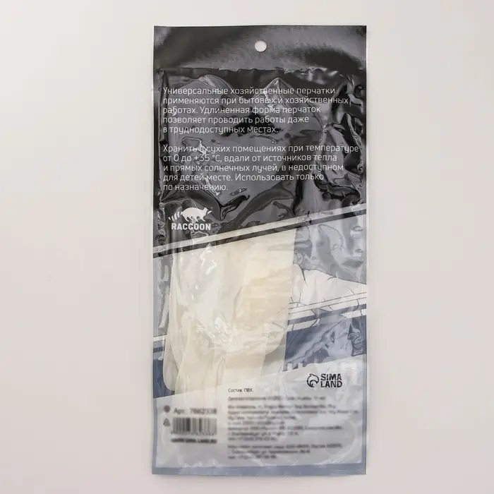Перчатки хозяйственные Raccoon с манжетой, ПВХ, 95 гр, размер M, 40 см, цвет белый