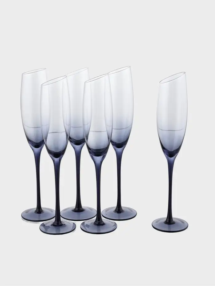 Набор бокалов для шампанского "Иллюзия" 160 мл, 6 шт р-р 1й шт 5,5х27,5 см, синяя ножка