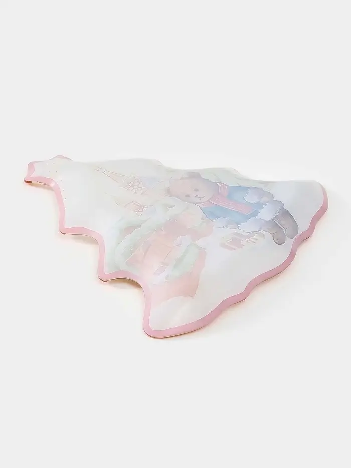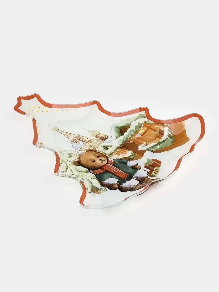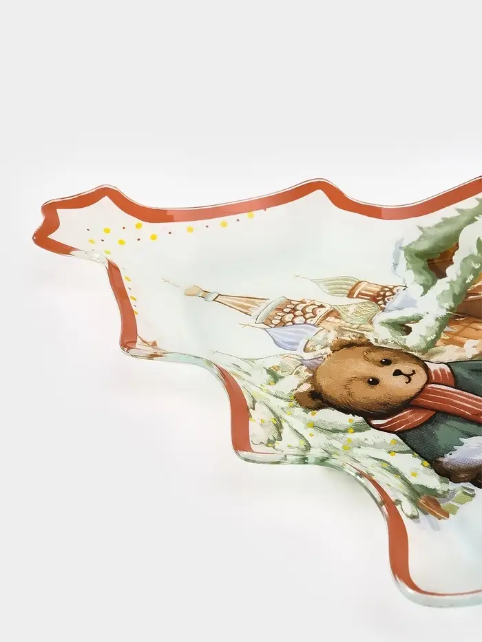 Блюдо сервировочное новогоднее Доляна «Московкий мишка», 24.5×24.7×2 см, стекло, белое, красное