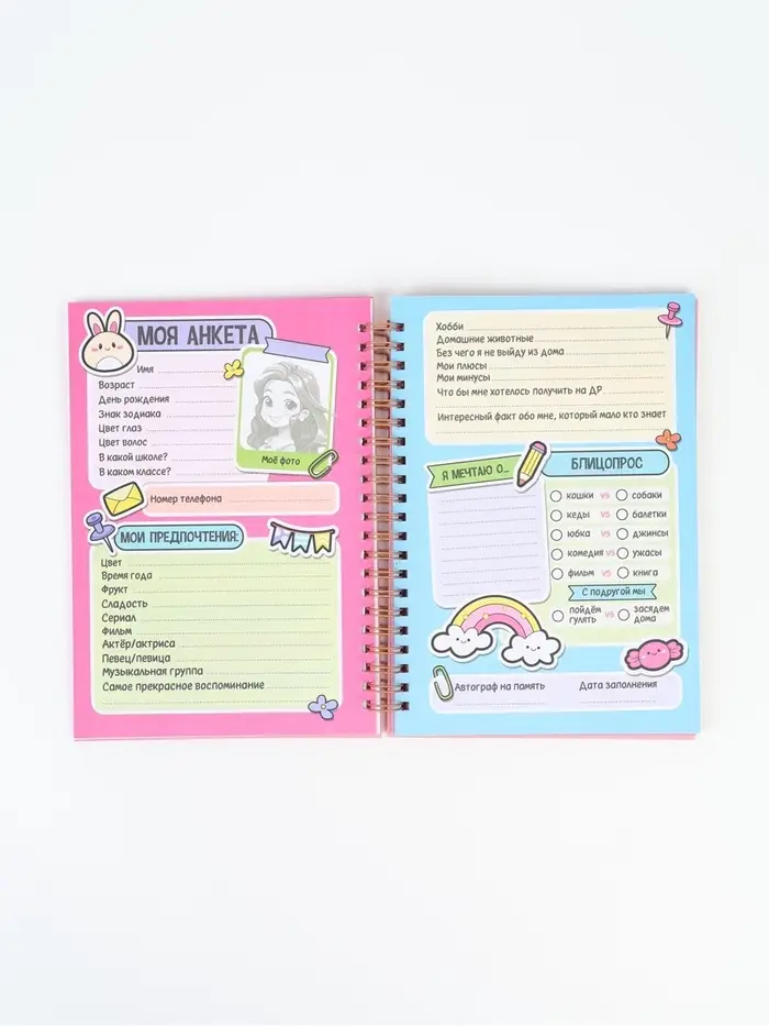 Анкета для девочки А5, 50 листов. Твердая обложка "Принцесса"