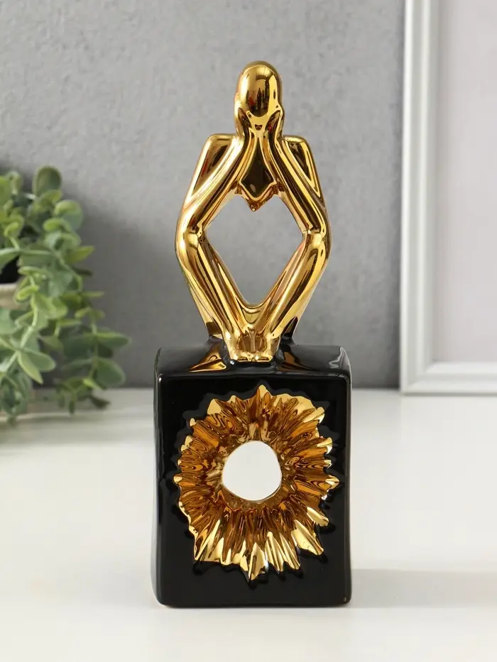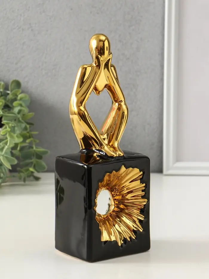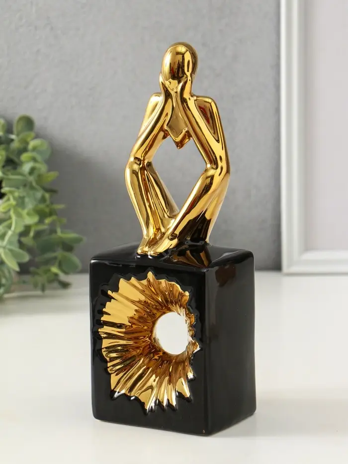 Сувенир керамика "Ожидание. Человек" чёрный с золотом 7х9,5х26 см