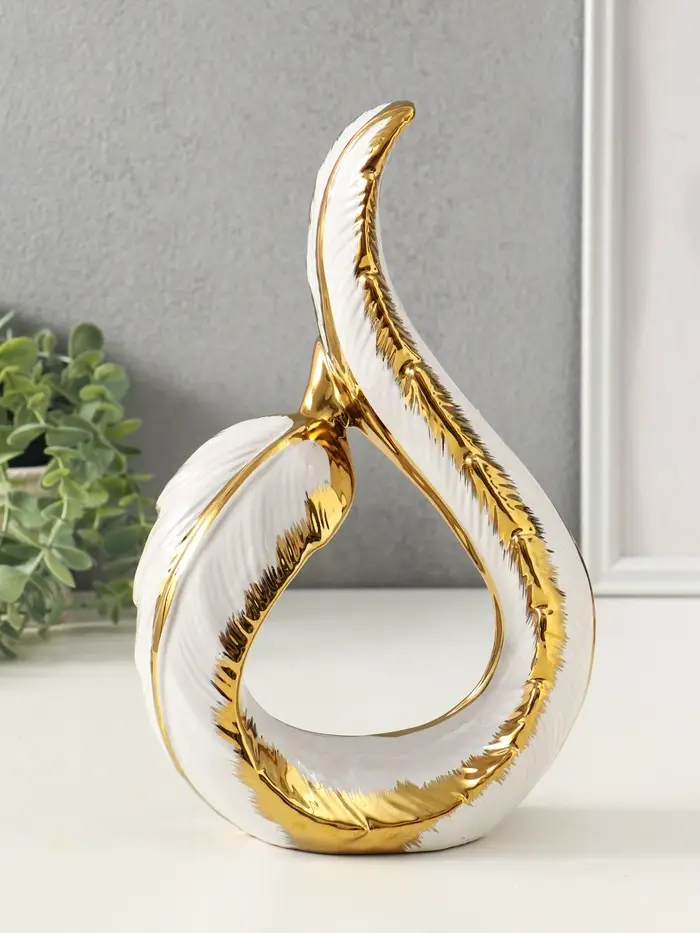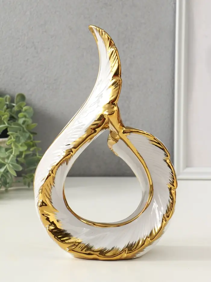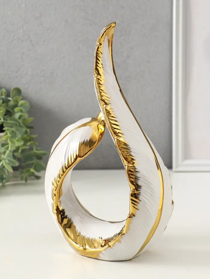Сувенир керамика "Изогнутое пёрышко" белый с золотом 9х17,5х29,5 см