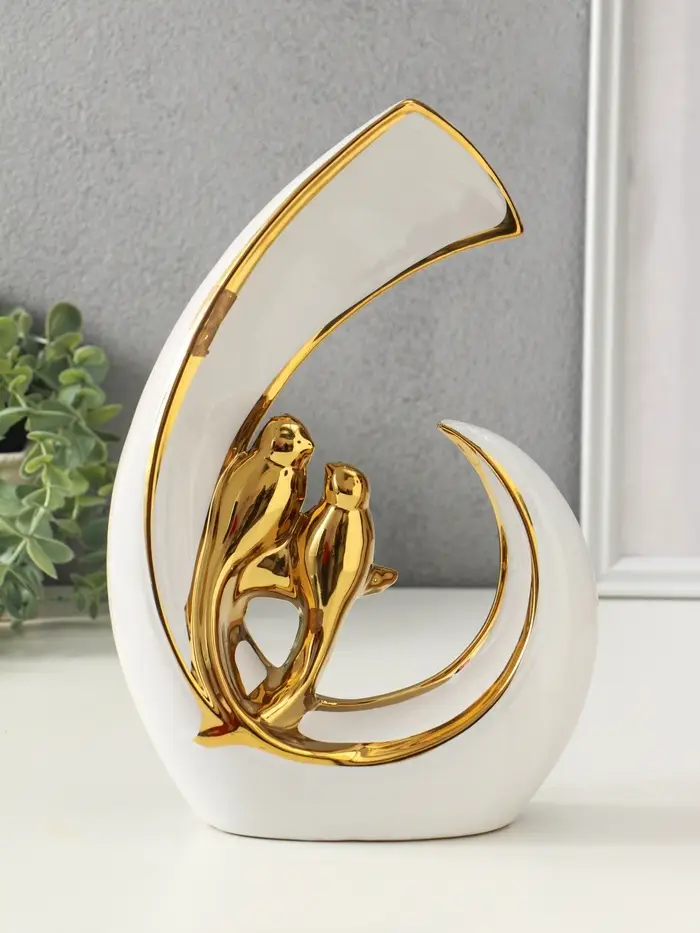 Сувенир керамика "Две птички. Абстракция" белый с золотом 8х20х29 см