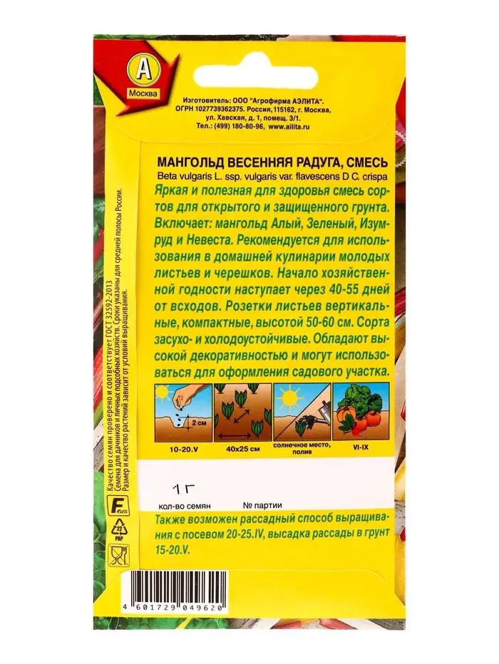 Семена Мангольд Весенняя радуга, смесь, Ц/П,1 г