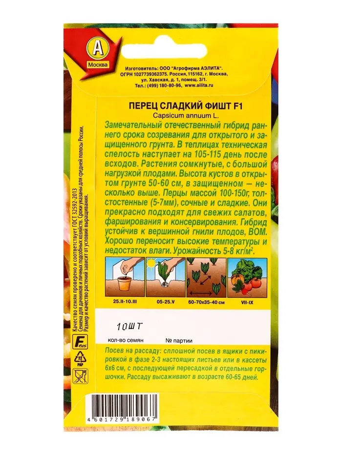 Семена Перец сладкий Фишт F1, Ц/П,10 шт.