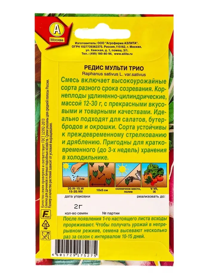 Семена Редис Мульти трио, Ц/П,2 г