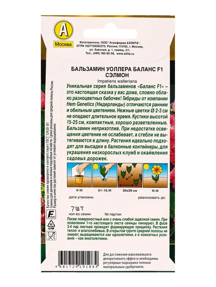 Семена цветов Бальзамин Баланс F1 сэлмон С. Hem Genetics Золотая серия, Ц/П,7 шт.