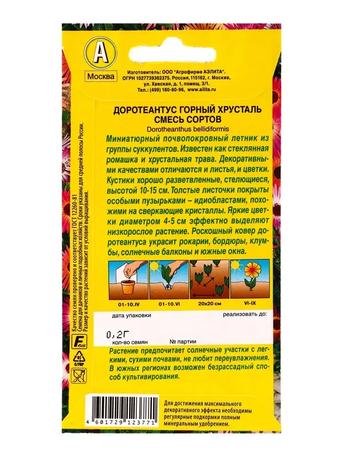 Семена цветов Доротеантус Горный хрусталь, смесь сортов , Ц/П,0,2 г