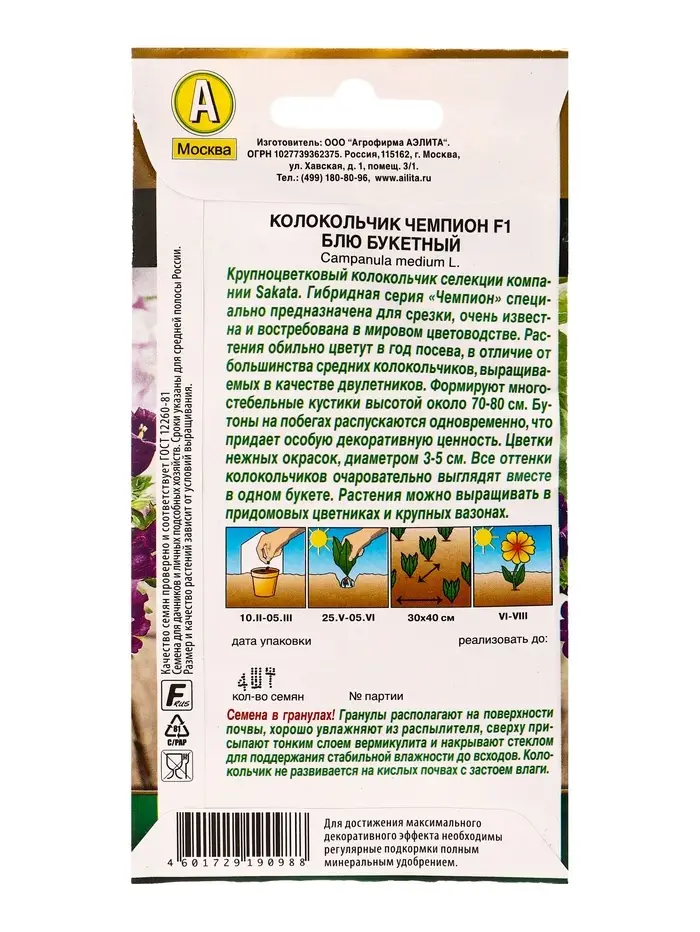 Семена цветов Колокольчик Чемпион F1 блю букетный (драже) С. Sakata , Ц/П,4 шт.