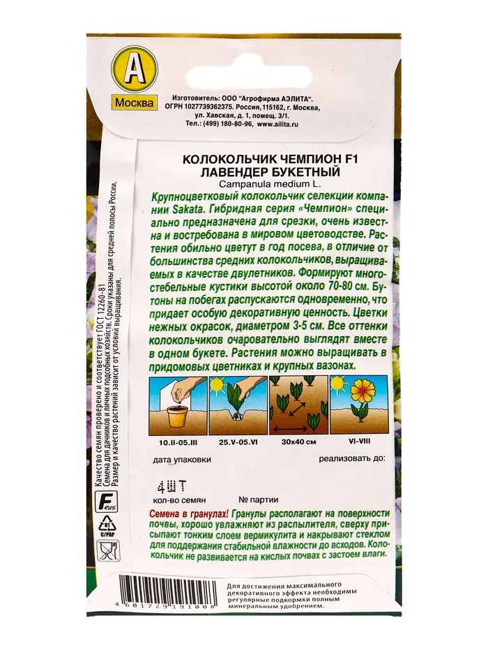 Семена цветов Колокольчик Чемпион F1 лавендер букетный (драже) С. Sakata , Ц/П,4 шт.