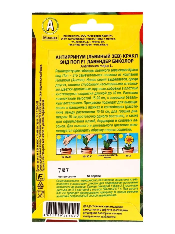Семена цветов Львиный зев Кракл энд поп F1 лавендер биколор С. Floranova Цветущий балкон, Ц/П,7 шт.