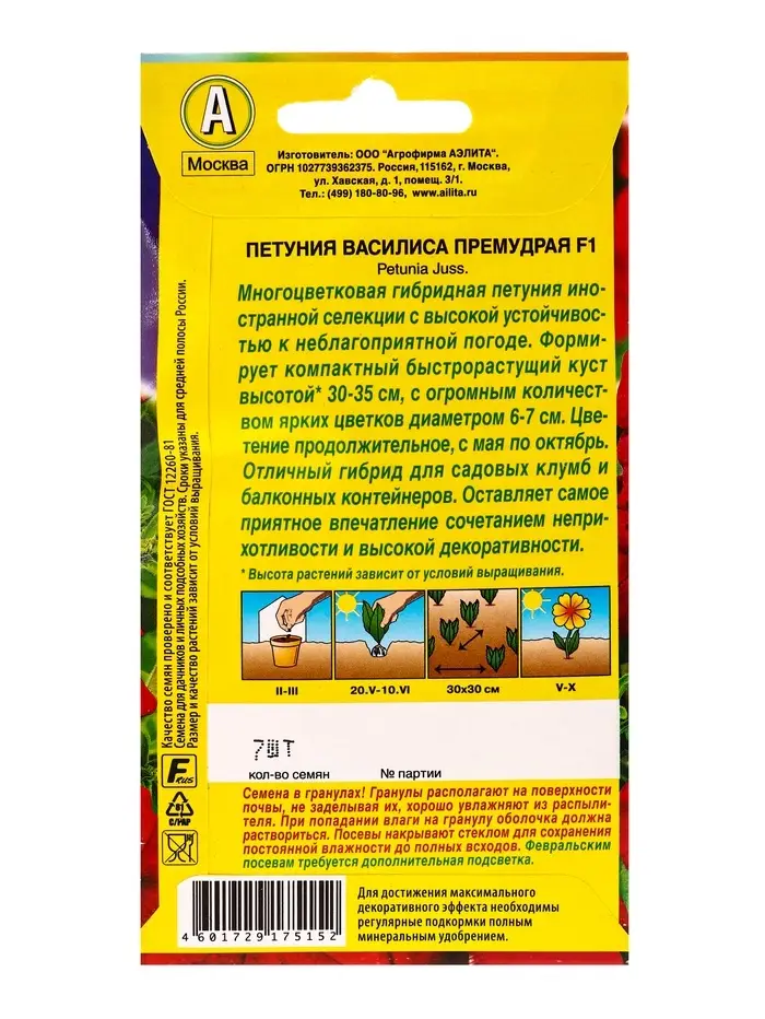 Семена цветов Петуния Василиса Премудрая F1 многоцветковая (драже в пробирке), Ц/П,7 шт.