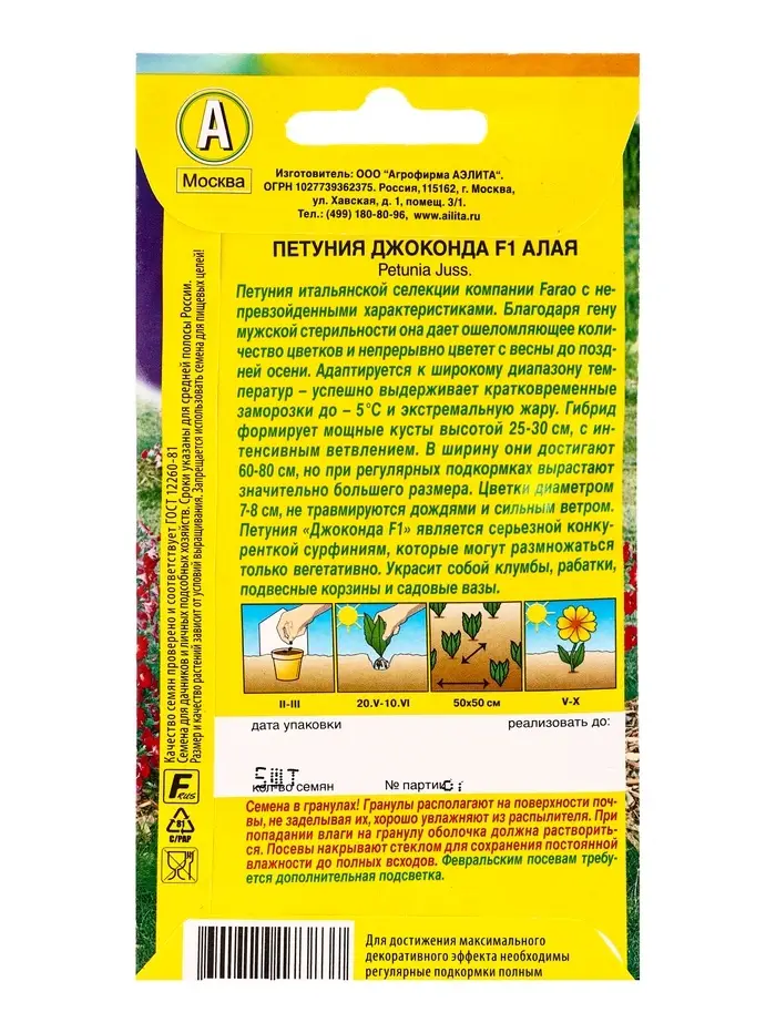 Семена цветов Петуния Джоконда F1 алая (драже в пробирке) С. Farao, Ц/П,5 шт.