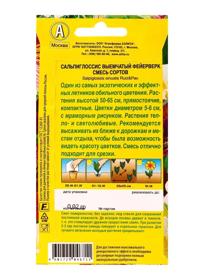 Семена цветов Сальпиглоссис Фейерверк, смесь сортов , Ц/П,0,02 г