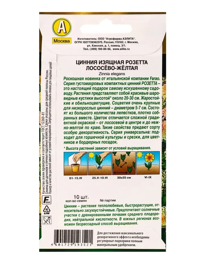 Семена цветов Цинния Розетта лососево-желтая Золотая серия, Ц/П,10 шт.