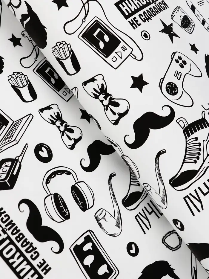 Крафт бумага "На стиле" черный цв. на белом фоне 0,72 х 10 ±5% м, 60 гр