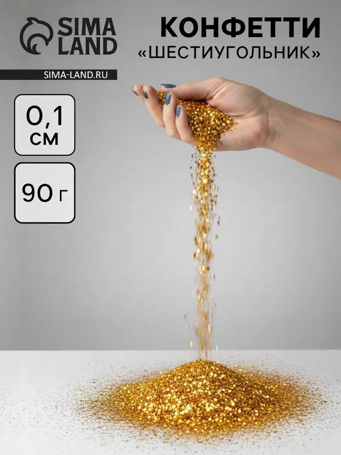 Конфетти «Шестиугольники» золото, голография, 0.1 см, 90 г