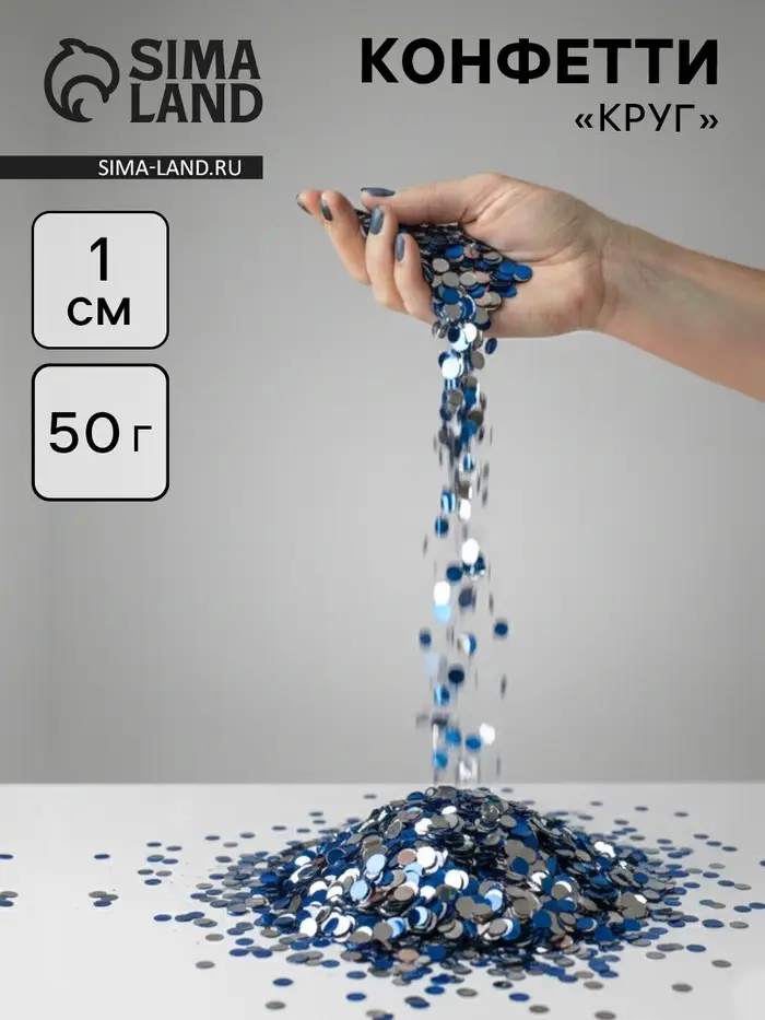 Конфетти «Круг» голубой МИКС, металлик, 1 см, 50 г