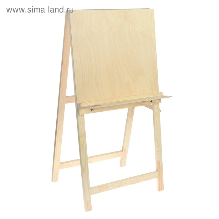 Напольный мольберт ""Хлопушка""- оптимальное соотношение функциональности и цены для начинающих художников и первого знакомства со знаковой живописью. Мольберт имеет простую конструкцию: пять положениий угла наклона рабочей поверхности и полка с бортиком для художественных материалов. Бумагу на планшете можно закрепить кнопками или малярным скотчем, так же при необходимости планшет мжно снять. Мольберт подходит для занятий в студии и дома, он складывается и не занимает много места при хранении. Изготовлен в России из неокрашенной доски и фанеры высшего сорта сибирской сосны. При таком тщательном отборе материалов вы можете быть уверены, что конструкция не деформируется со временем и не рассохнется. Все поверхности зашлифованы для безопасности и комфорта работы художника.