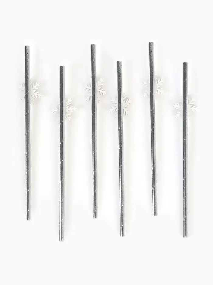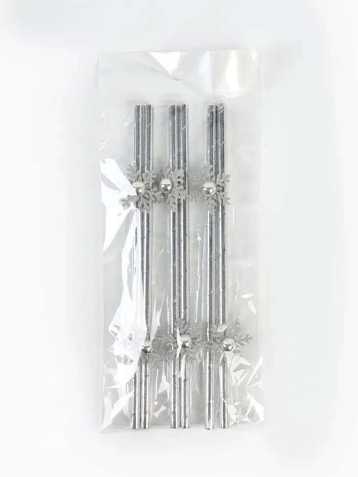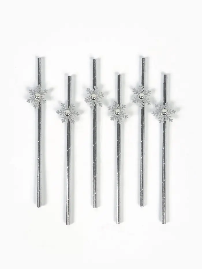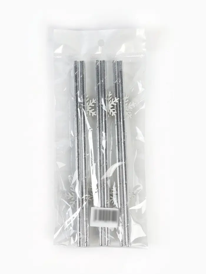 Трубочки для коктейля "Снежинки", серебро набор 6 штук