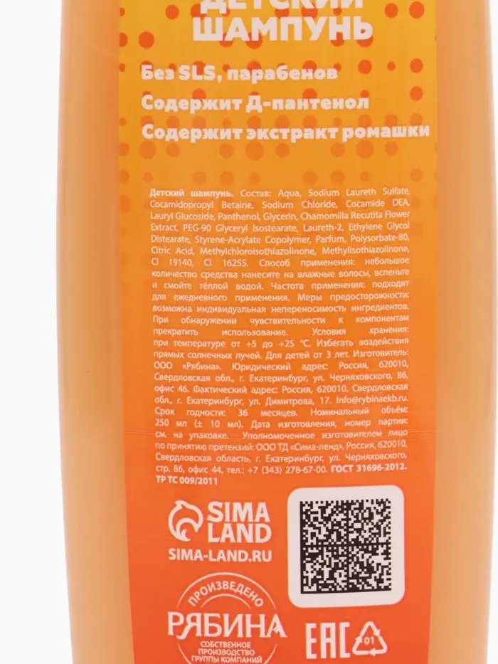 Детский шампунь, аромат апельсиновое мороженое, 250 мл, Чебурашка