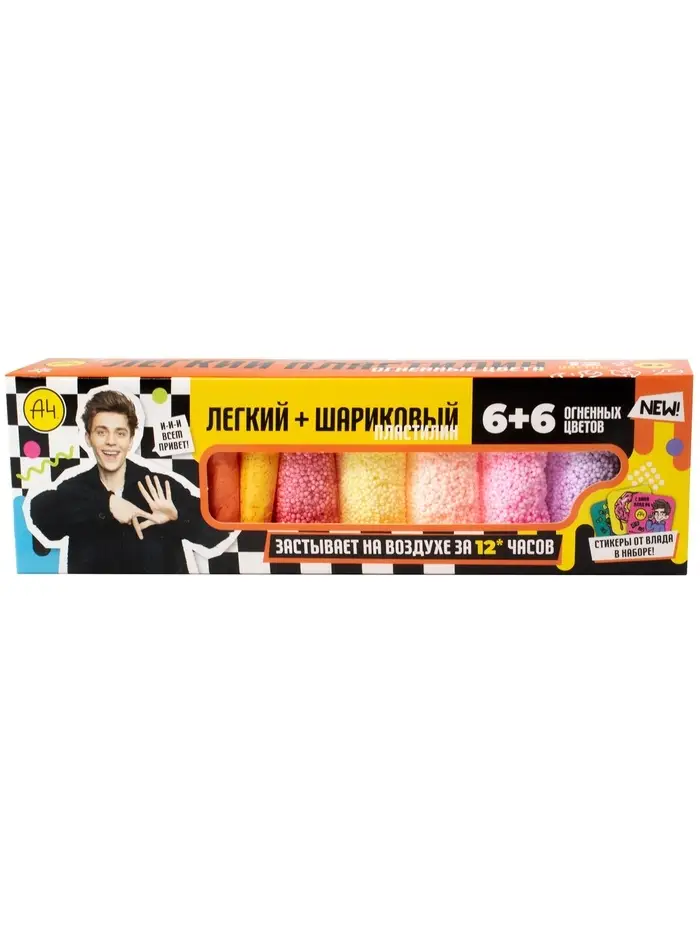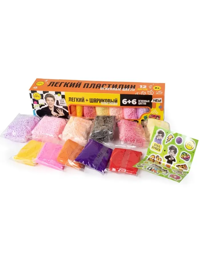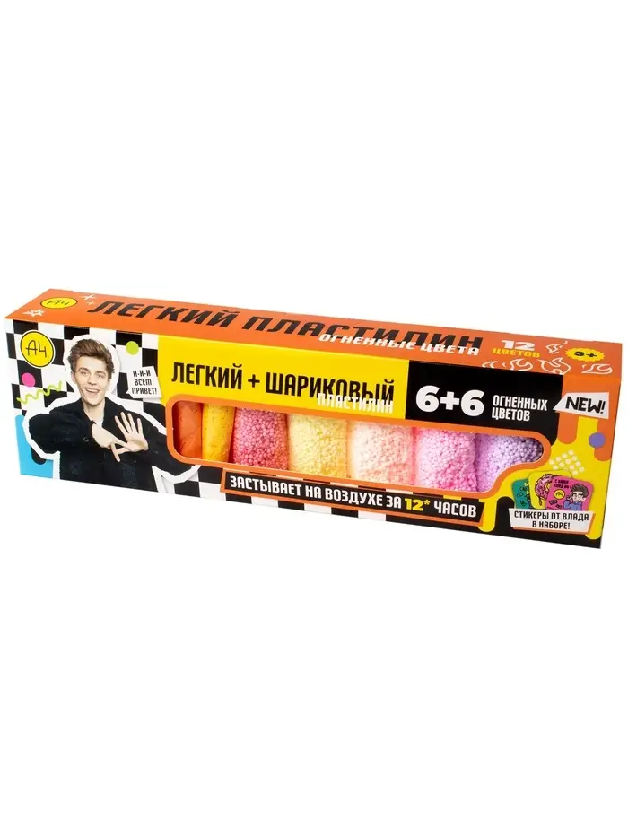 Игрушка в наборе Легкий пластилин Влад А4 12 шт с шариковым пластилином огненные цвета коробка 10948